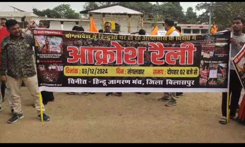 प्रचंड प्रहार/बिलासपुर। बांग्लादेश में हिंदुओं पर हो रहे अत्याचार के विरोध में मंगलवार को बिलासपुर के हिन्दू जागरण मंच के द्वारा जनाक्रोश रैली निकाली, साथ ही राष्ट्रपति के नाम कलेक्टर को ज्ञापन सौपा। बांग्लादेश में हो रहे हिंदुओ के खिलाफ बर्बरता और क्रूरता को लेकर देश के हिंदुओं में जबरदस्त आक्रोश है। मंगलवार को बिलासपुर के हिन्दू संगठनों ने रैली निकालकर मुख्यमार्ग में यूनुस सरकार के खिलाफ नारेबाजी कर प्रदर्शन किया और कलेक्ट्रेट पहुँचकर राष्ट्रपति के नाम ज्ञापन सौंपा।